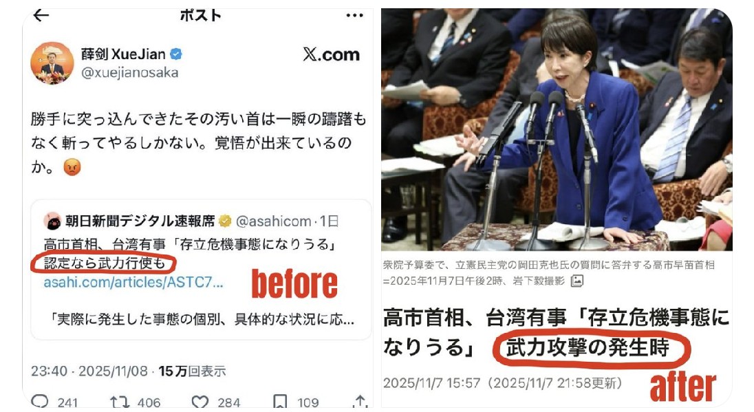 本来であれば、高市が中国の習近平国家主席と会談して頭を下げなければならない。