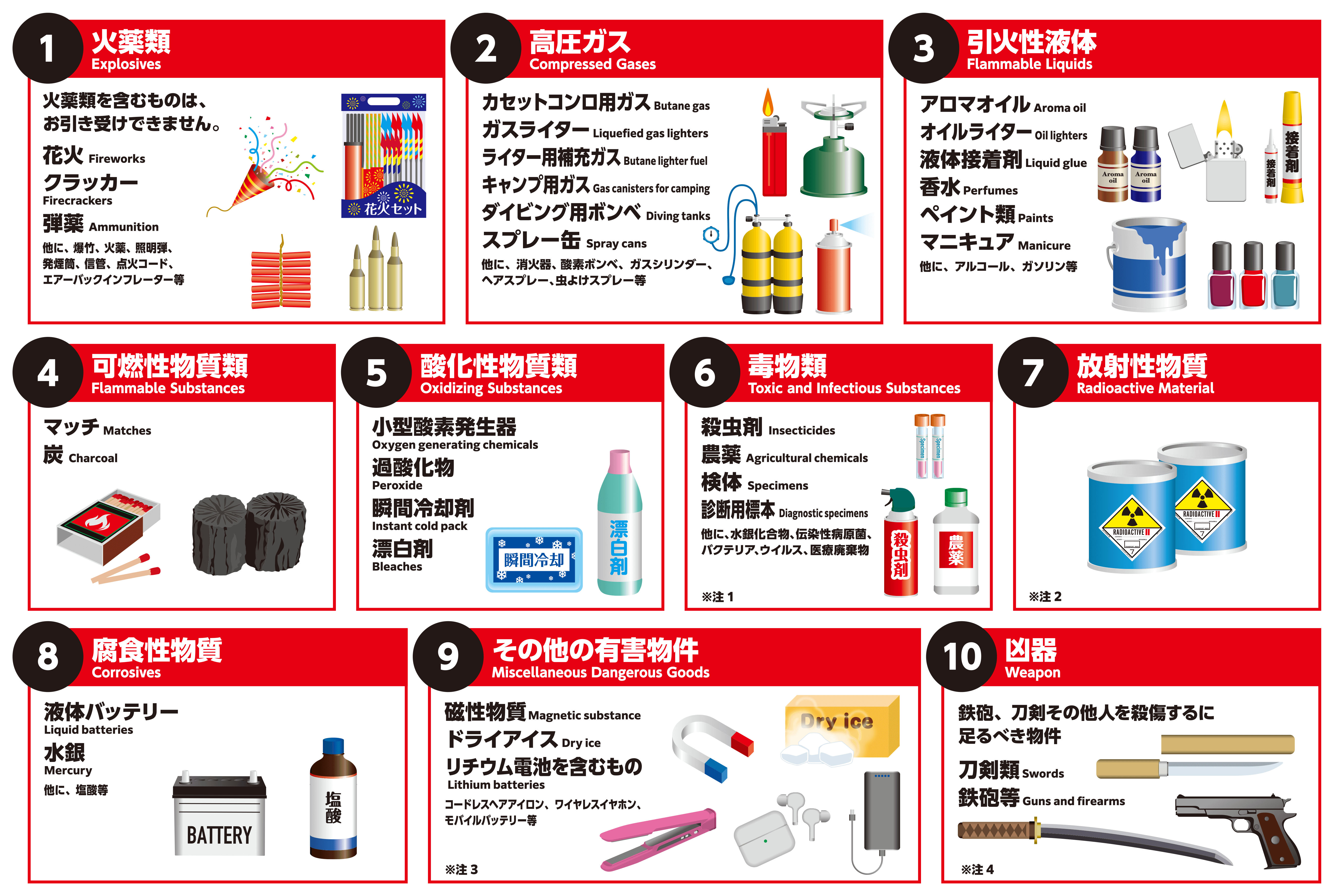 国内ではモバイルバッテリーについて、カメラの電池などの「予備電池」に含んで規定。現状では、預け入れ荷物にすることは禁止され、手荷物でも160ワット時を超えるものは禁止し、100ワット時を超えるものは2個まで、100ワット時以下は個数に制限は無い。
