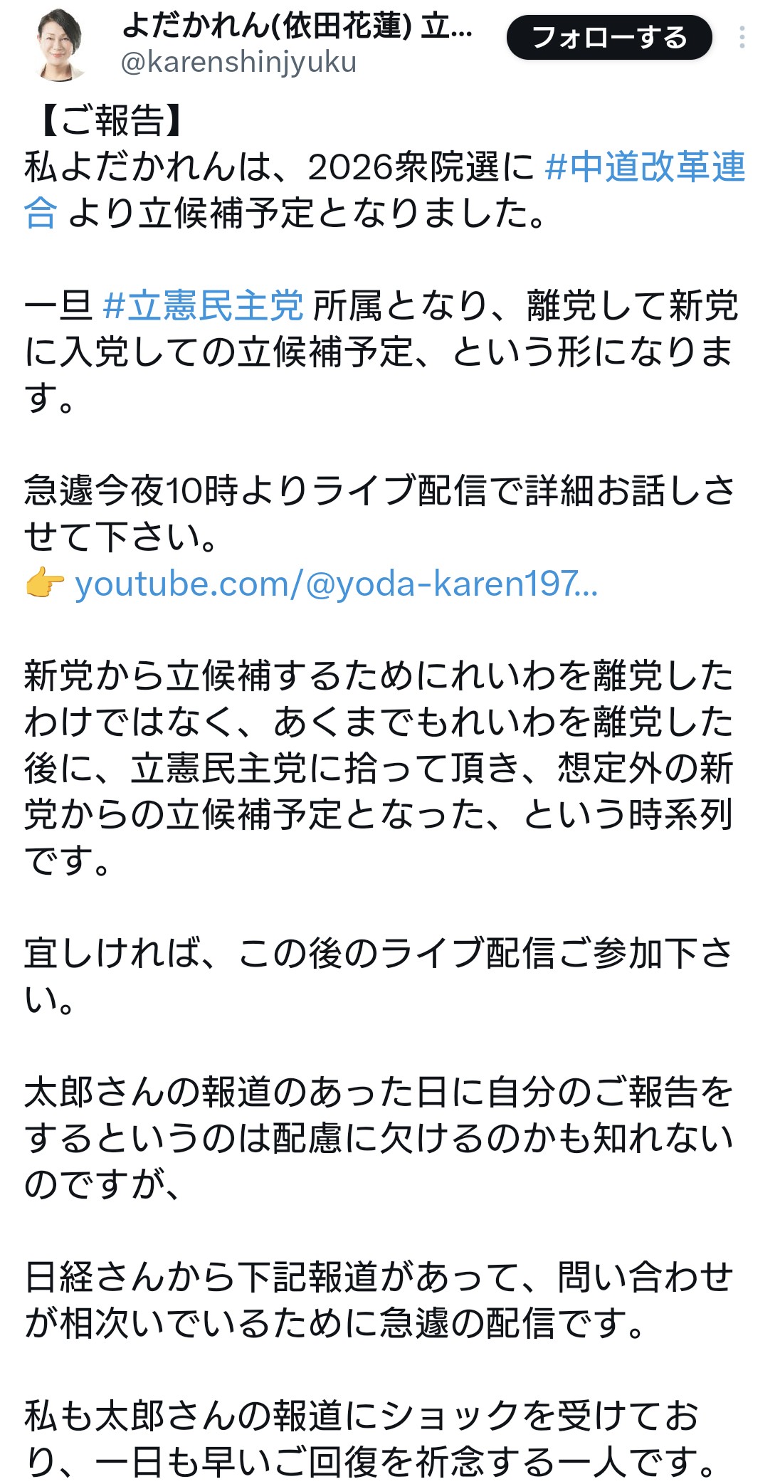 | … | 19無題Name名無し 26/01/20(火)21:59:10 IP:49.109.*(spmode.ne.jp)No.4389804+>立民公式垢の過去投稿突き付けられて |