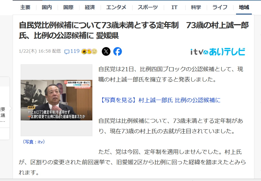 | … | 17無題Name名無し 26/01/22(木)20:16:12 IP:153.246.*(ocn.ne.jp)No.4390044そうだねx1 1769080572429.png-(159162 B) >そういや村上誠一郎も出馬しないんだってな |