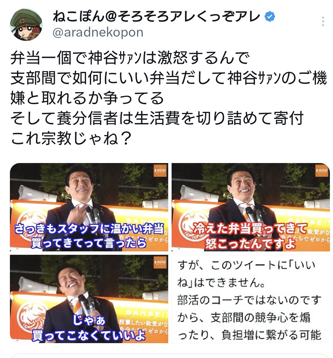 参政党の神谷宗幣代表は31日、衆院選で活用している交流サイト(SNS)の反応が昨年の参院選の時と比べ芳しくないと明かした。「参院選より聴衆は多く、党員の熱量も高いが、SNSの発信が全然広がっていない。ちょっと違和感がある」と堺市で記者団に話した。レス1件省略。全て読むには返信ボタンを押してください。