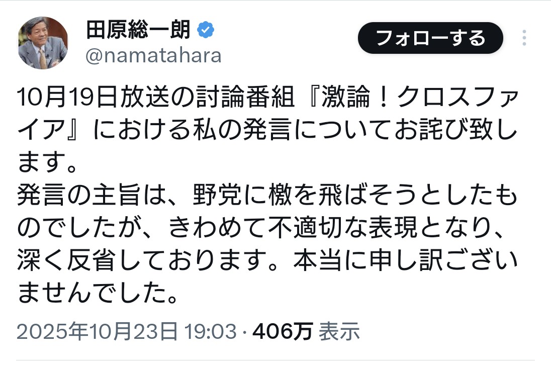 「高市総裁の経済政策が、私たちの考えに近いのも確かです。しかし、トップが変わっても同じ自民党、私たちがかつてした約束(トリガー条項凍結解除や三党合意)は未だ果たされていません。これが事実であり、現実です。高市新体制というより自民党の姿勢をよく見極めたいというのが正直なところです」と本音を吐露。