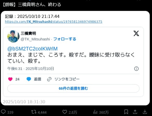 … | 16無題Name名無し 25/10/11(土)03:19:25 IP:106.128.*(au-net.ne.jp)No.4380710そうだねx2 1760120365908.jpg-(138423 B) ![]() https://news.yahoo.co.jp/articles/6763cb52a252af7d23068c443f996ea54b18f80d |