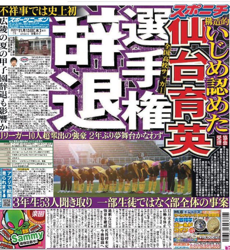 | … | 1無題Name名無し 25/12/15(月)08:09:25 IP:59.132.*(au-net.ne.jp)No.4386890そうだねx3第2の…っていうかこの手の不祥事は仙台育英の方が先じゃね? |