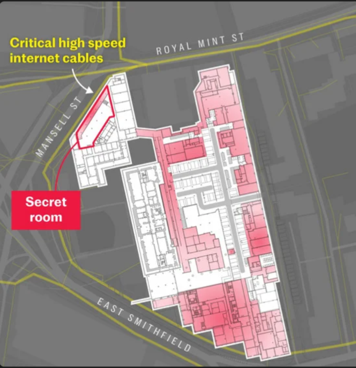 中国が建設中の「スーパー大使館」には光ファイバーの機密通信ケーブルに沿って隠し部屋が設計されていると判明