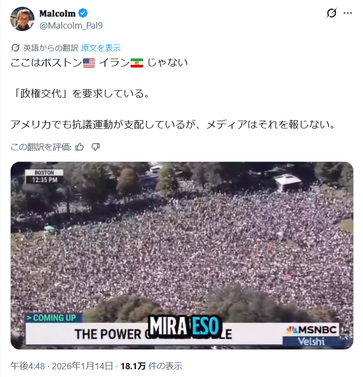 | … | 4無題Name名無し 26/01/16(金)07:23:52 IP:112.68.*(eonet.ne.jp)No.4389357そうだねx1>全米各地で抗議デモが行われているようだが、 |