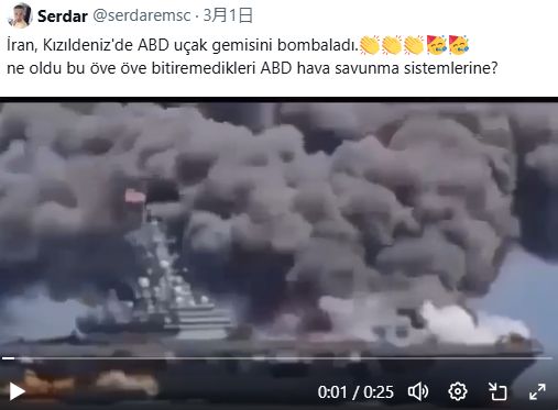 | … | 1無題Name名無し 26/03/02(月)08:31:36 IP:153.230.*(ocn.ne.jp)No.4393804+米空母は、イランの無人機の攻撃を受けた。 |