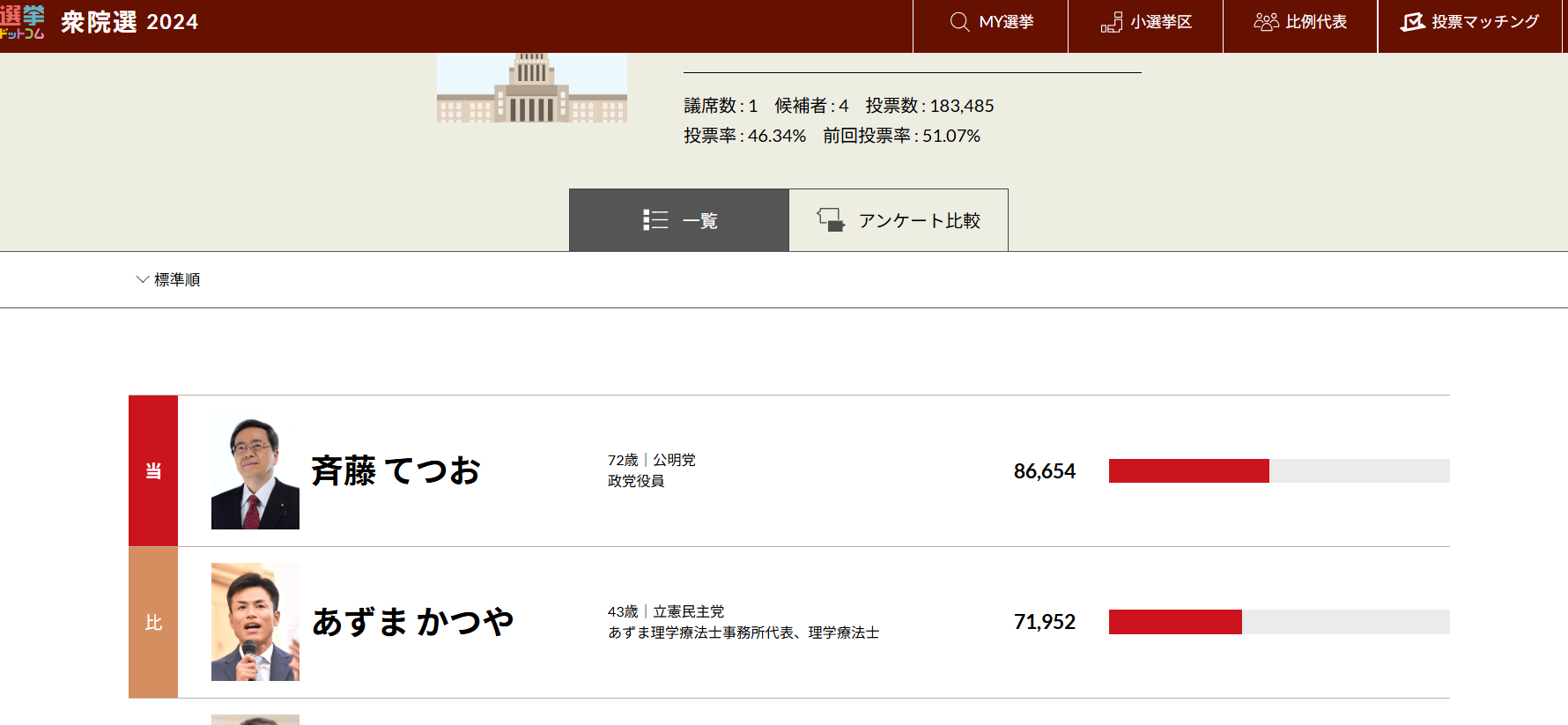 … | 35無題Name名無し 25/10/11(土)10:31:42 IP:153.246.*(ocn.ne.jp)No.4380738そうだねx1 1760146302385.png-(144232 B) ![]() https://shugiin.go2senkyo.com/50/senkyoku/44207/ |