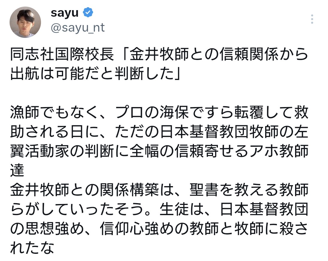 辺野古沖で抗議船2隻が転覆 男女2人が意識不明 平和学習の同志社国際高校の生徒乗船レス59件省略。全て読むには返信ボタンを押してください。