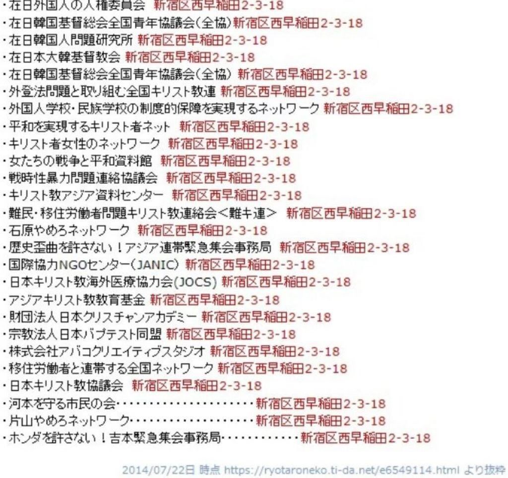| … | 69無題Name名無し 26/03/18(水)08:08:17 IP:59.132.*(au-net.ne.jp)No.4395484+ 1773788897350.jpg-(175831 B) 豆しば「ねぇ、知ってる〜?日本基督教団を含むそこそこの数の抗議団体の所在地が同じ場所なんだって〜」 |