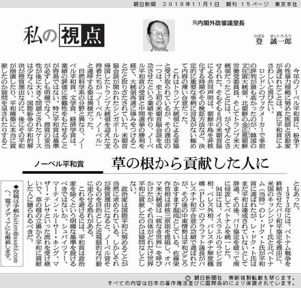 「それはわが国への大きな侮辱になると言っておこう。私ではなく、この国に受賞してほしい」「この国が受賞すべきだ。このようなことはかつてなかったからだ」と付け加えた。