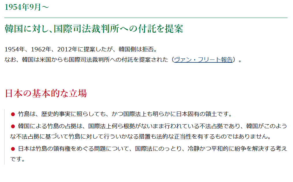 声明は、竹島は歴史的、地理的、国際法的に韓国固有の領土だと主張し、日本政府に「不当な主張を即刻中断し、謙虚な姿勢で歴史を直視すべきだ」としている。