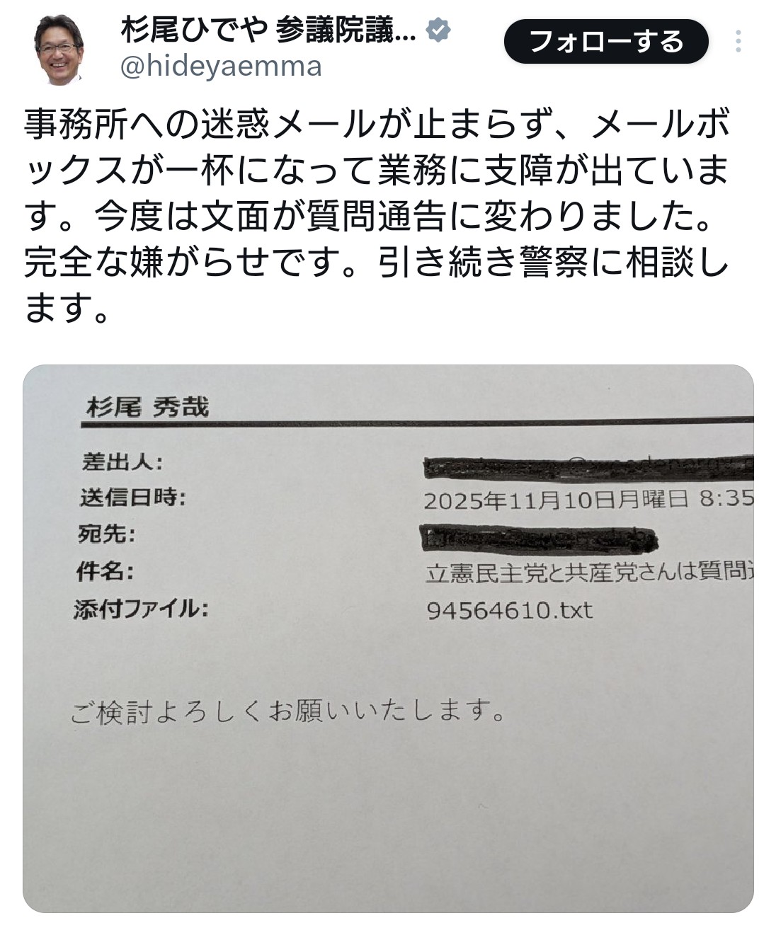 | … | 18無題Name名無し 25/11/10(月)11:19:15 IP:59.132.*(au-net.ne.jp)No.4383667+ 1762741155213.jpg-(226050 B) まだ警察に相談の段階なの? |