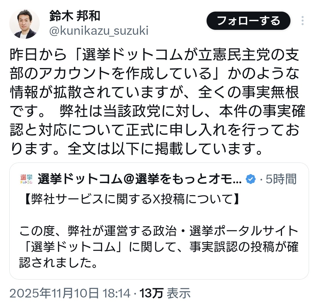 | … | 18無題Name名無し 25/11/10(月)23:21:15 IP:14.9.*(enabler.ne.jp)No.4383744+ 1762784475997.jpg-(220310 B) >うん?君達選挙ドットコムでSNSのポスト工作してたん?悪質なのでは? |