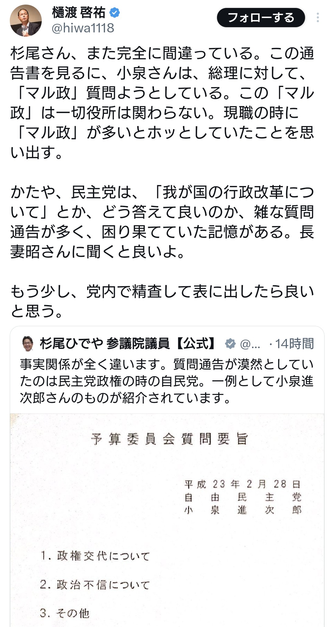 | … | 14無題Name名無し 25/11/10(月)17:12:06 IP:59.132.*(au-net.ne.jp)No.4383704+ 1762762326866.jpg-(241468 B) 質問通告書比較:国民民主党玉木の場合 |