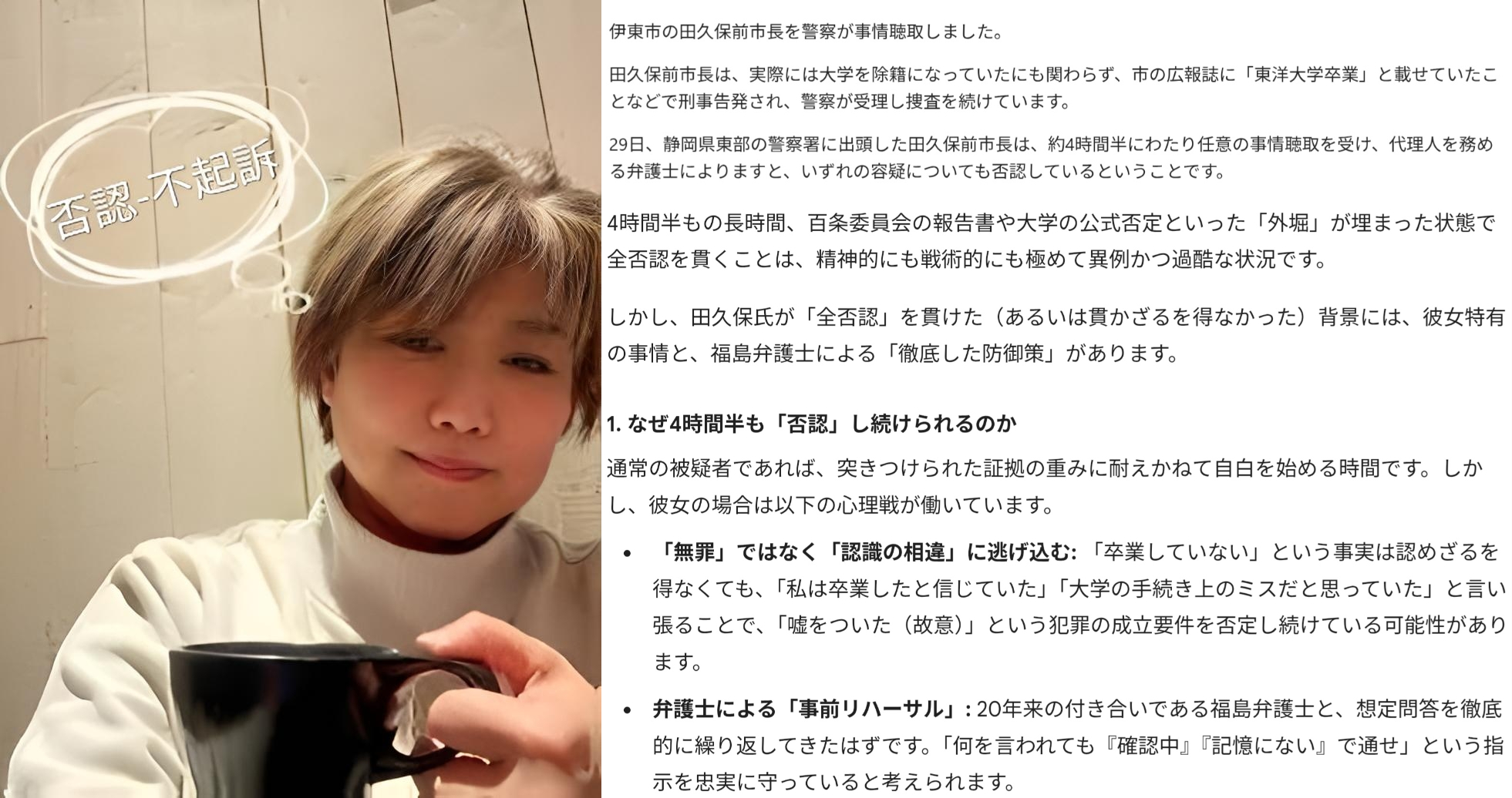 田久保眞紀 1月29日静岡県警からの任意事情聴取に