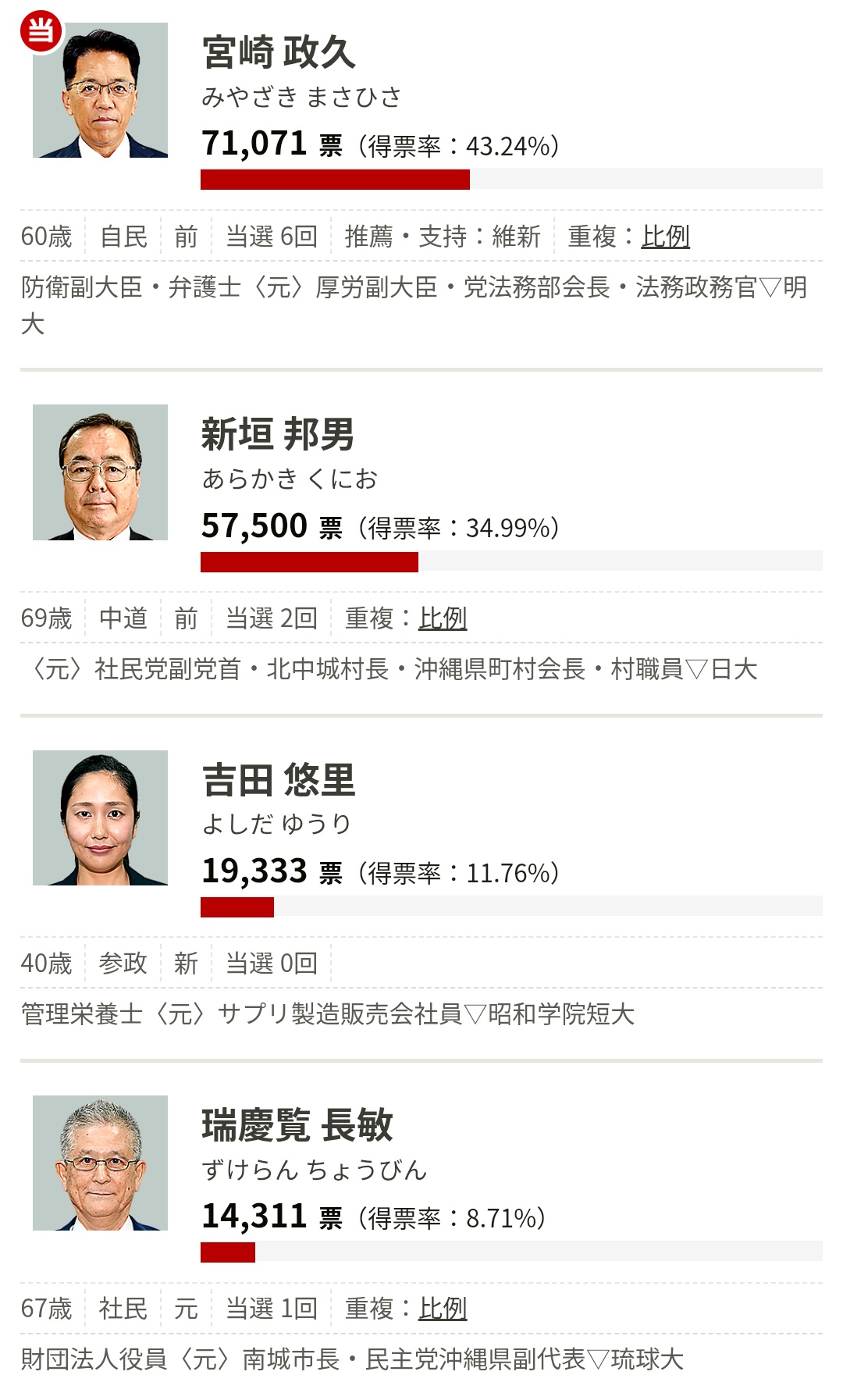 中道の小沢一郎氏や安住淳氏らも小選挙区で敗れ、比例復活できなかった。