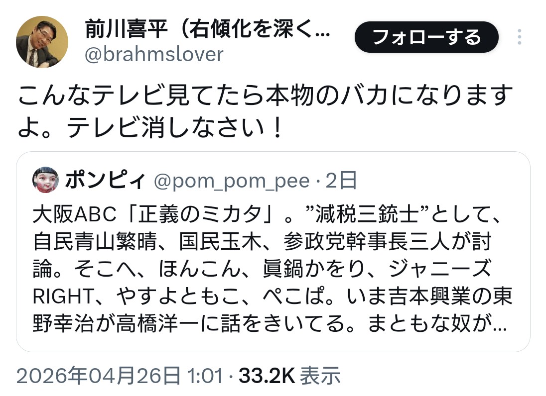 | … | 9無題Name名無し 26/04/25(土)11:46:54 IP:126.34.*(bbtec.net)No.4399221そうだねx4当時は って言ってるだけで何が問題なのかわからんわ |