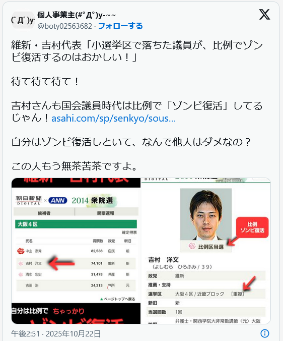 | … | 10無題Name名無し 25/10/26(日)13:56:33 IP:125.12.*(home.ne.jp)No.4382226+山本太郎レベルの知能w |