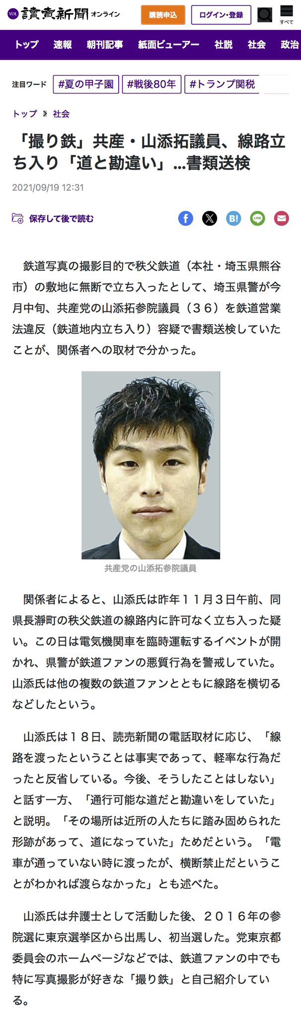 | … | 6無題Name名無し 25/11/10(月)08:07:12 IP:59.132.*(au-net.ne.jp)No.4383648+ 1762729632046.jpg-(215601 B) つーかさ、山添さんも少し前に撮り鉄行為で書類送検されてるやん |