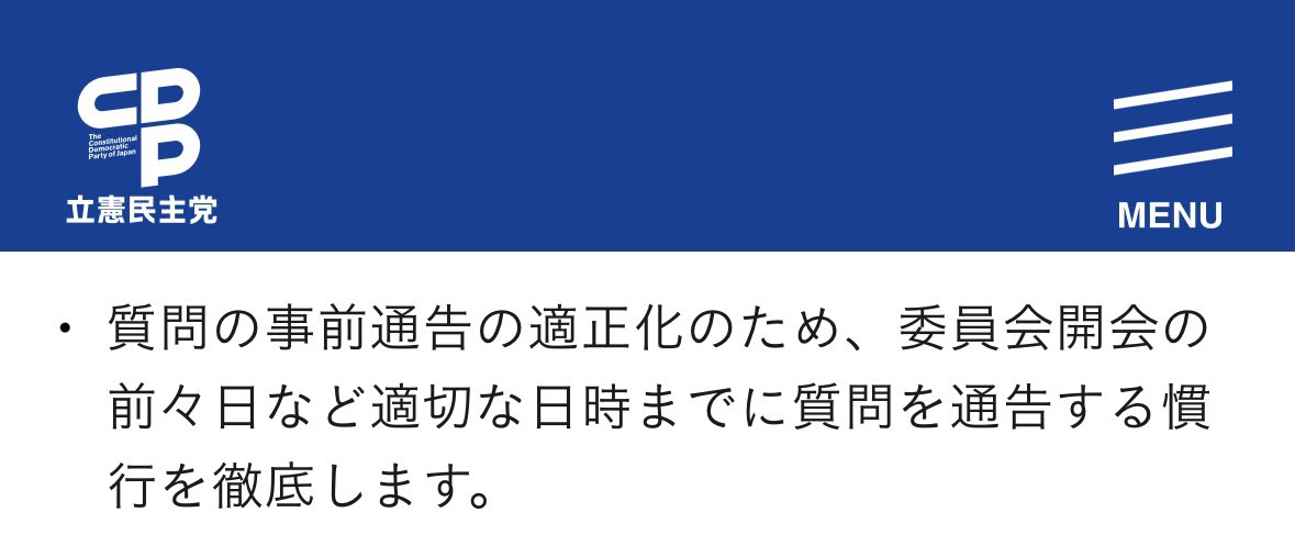 山添氏は「『2日前通告ルール』なるものは存在しない」と主張。「例えば参院予算委員会は理事会で日程を協議する際、前日正午までに質疑通告(答弁要求する大臣を指定)、質問内容の通告は前日午後5時を目途とするのが通例。なお、翌日の質疑が前日午後に決まることも多い。前日の答弁を踏まえ質問を練ることも当然必要」と指摘した。