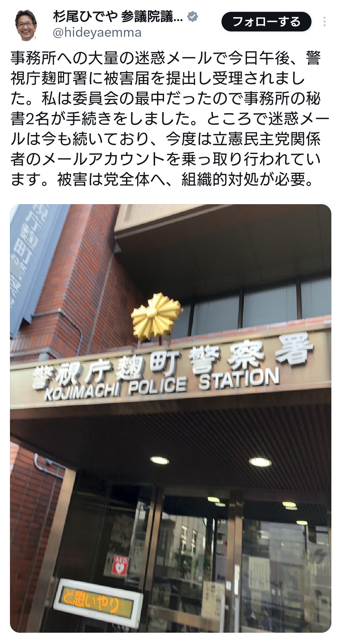 | … | 11無題Name名無し 25/11/14(金)08:25:50 IP:59.132.*(au-net.ne.jp)No.4384079+そういえばメールアカウント乗っ取られて同時期に「迷惑メール」が大量に送られてきてるんですよね?実はアカウントは乗っ取られてなくてそこから大量にメールが送られてるとしたら…ああ、失礼。警察には被害届出したんでしたよね |