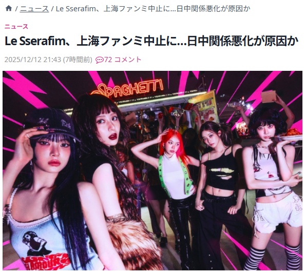 背景には、日中関係の悪化があるとみられている。最近、それが日本人メンバーが所属するK-POPグループへも飛び火する事態に発展。「Le Sserafim」には、宮脇咲良、カズハが在籍している。