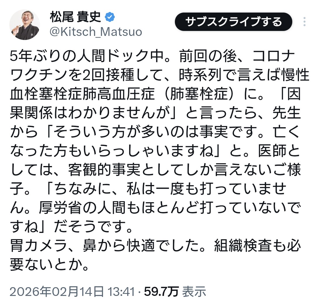 | … | 2無題Name名無し 26/02/15(日)16:39:57 IP:106.73.*(enabler.ne.jp)No.4392357+ 1771141197508.jpg-(666030 B) 松陰寺から責めこまれ、しどろもどろになりながらも、中国や北朝鮮の軍拡という“目の前の脅威”には踏み込まず、日本が悪いという話に終始していたラサールに対し、Xでは |