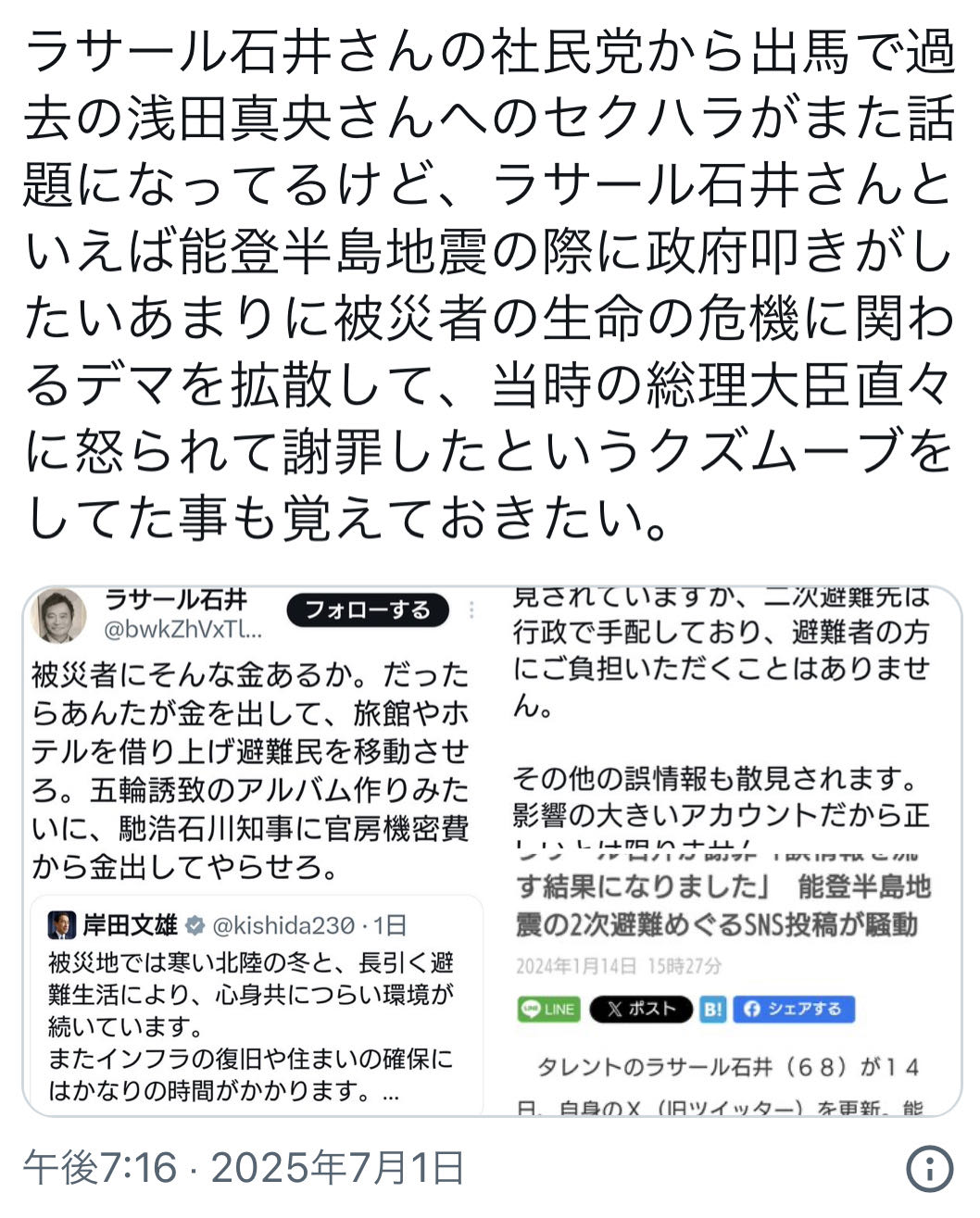 | … | 10無題Name名無し 26/03/05(木)02:17:56 IP:112.68.*(eonet.ne.jp)No.4394146+しかしよく社民党で出馬できたな |