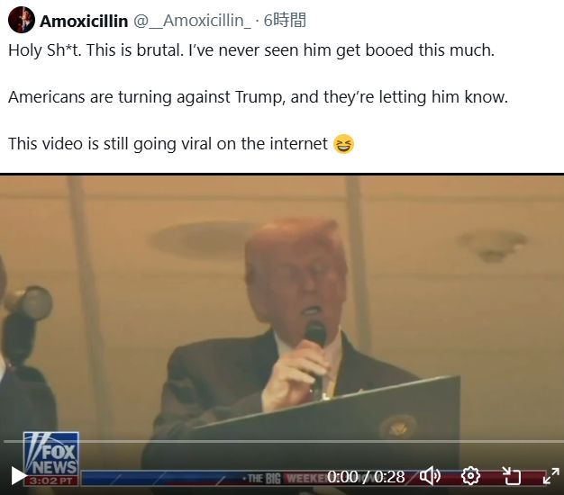 トランプ氏の演説に満場のブーイング。