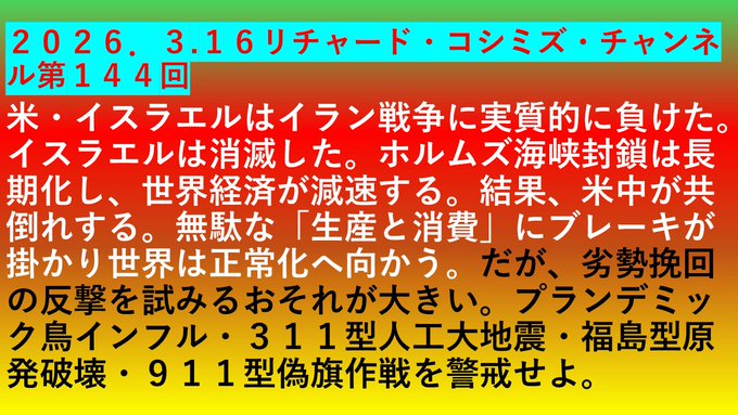 2026.3.16 リチャード・コシミズ・チャンネル第144回