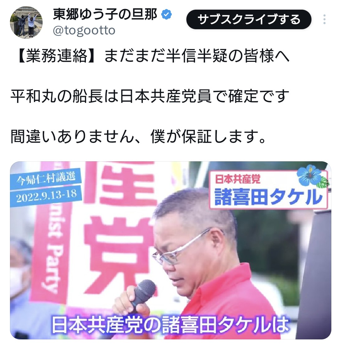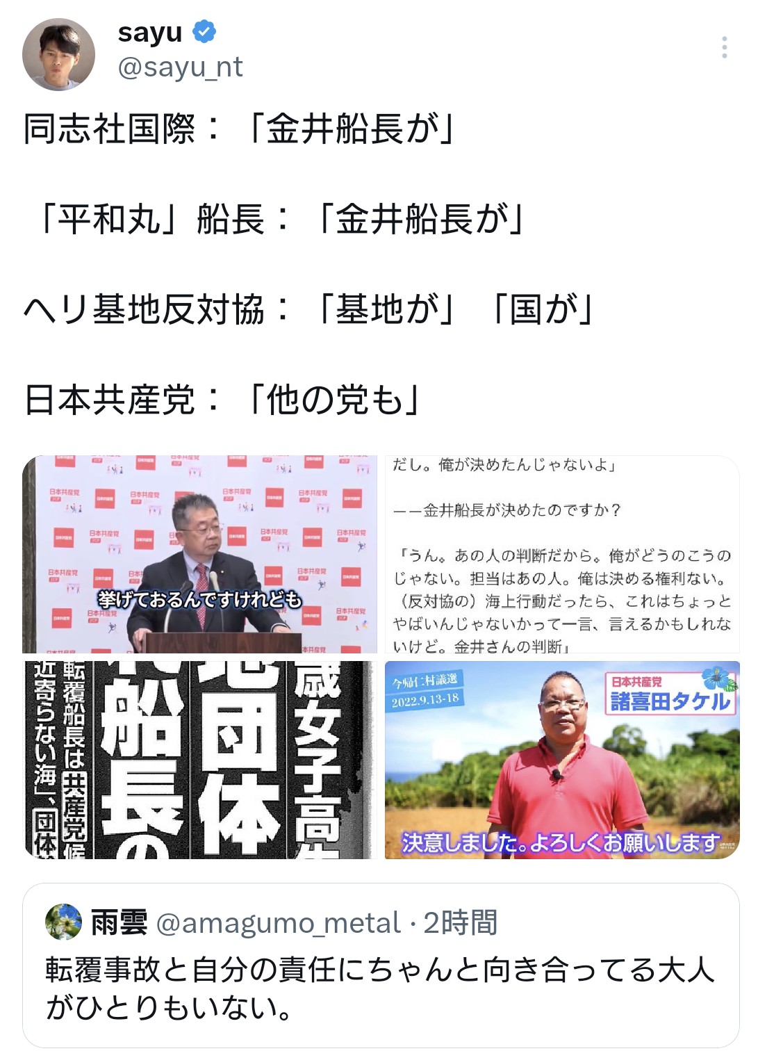 | … | 15無題Name名無し 26/03/25(水)14:41:04 IP:106.129.*(au-net.ne.jp)No.4396201+ 1774417264982.jpg-(379749 B) >平和丸の船長が日本共産党の幹部らしいけど |