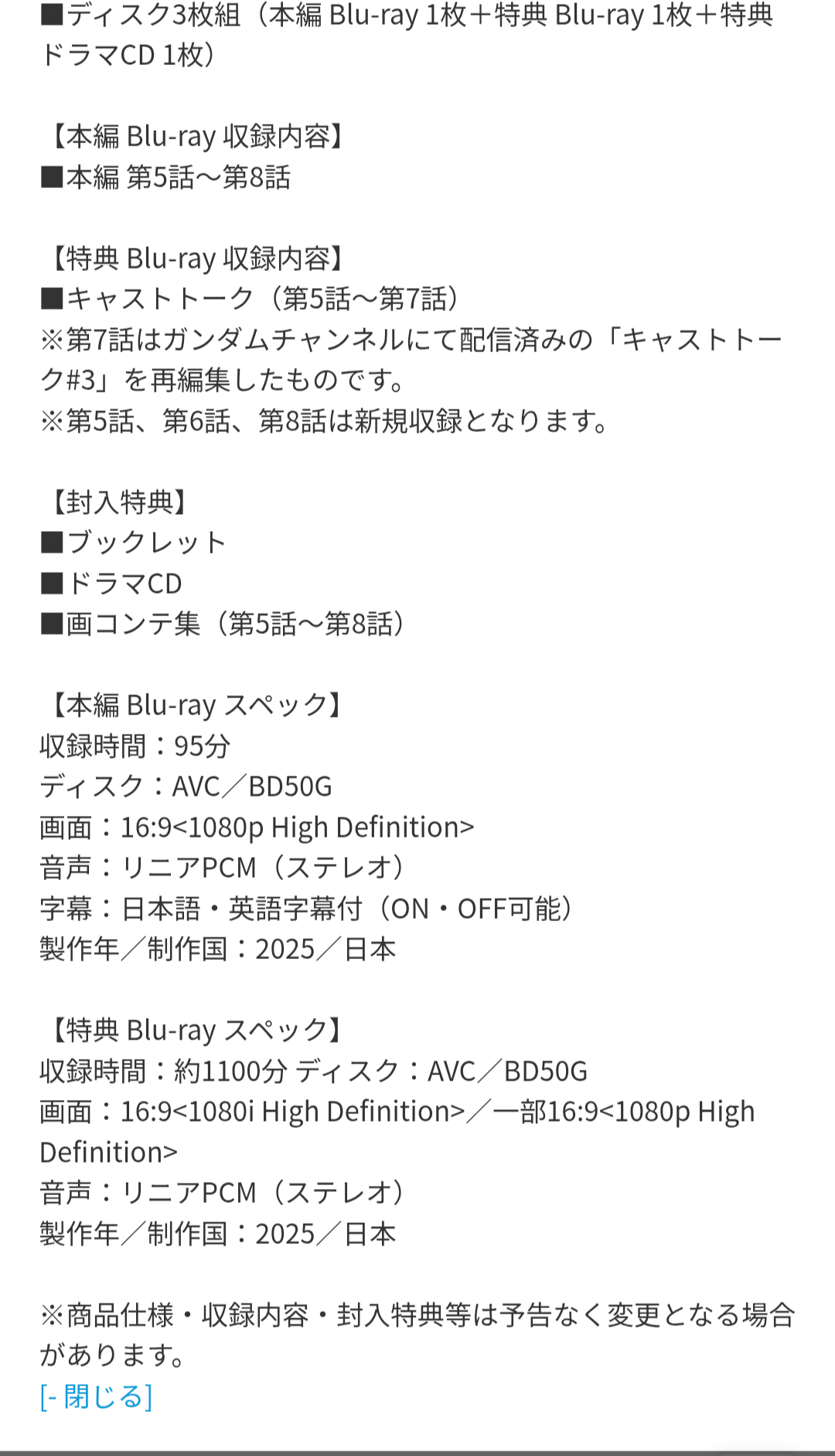 … | 5無題Name名無し 25/10/09(木)00:40:45 IP:153.184.*(ocn.ne.jp)No.1799168+ブルーレイは特装版しか出さない |