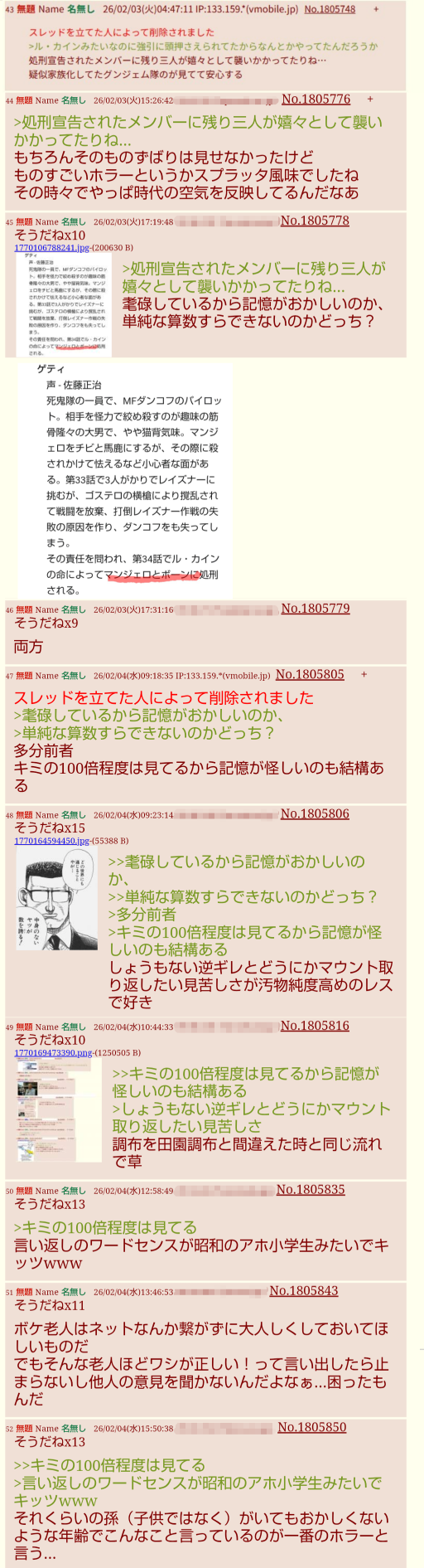 | … | 44無題Name名無し 26/02/03(火)05:13:53 IP:133.159.*(vmobile.jp)No.1805754+>またそういう事言ってるとガンダムエースの掲載作品も知らず |