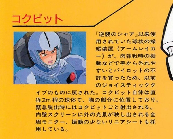ところで逆シャア観てるとボール型の操縦桿の穴にそれぞれ指を入れているような感じで動かしてた。モビルスーツみたいな機械の操縦に力を込める必要はなさそだけど、なんというか、感覚的に「タッチが軽すぎて不安」っていうパイロットもいただろうね。