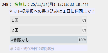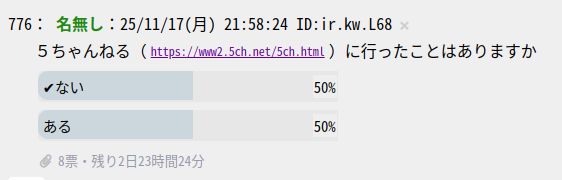 | … | 41無題Name名無し 25/11/18(火)21:02:15 IP:14.9.*(enabler.ne.jp)No.659025+で、こういうとき肝心の2ちゃんねるはどうかというと |