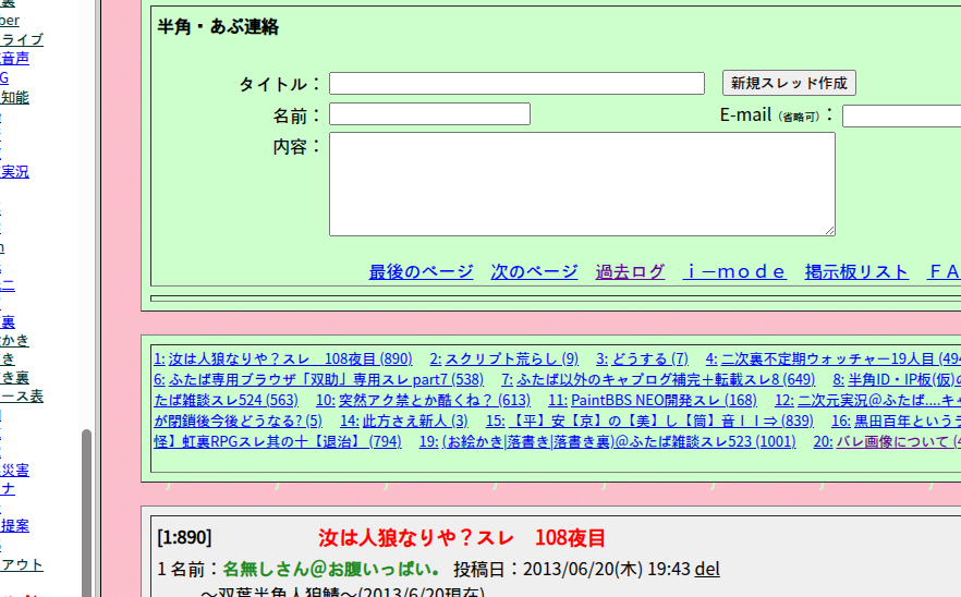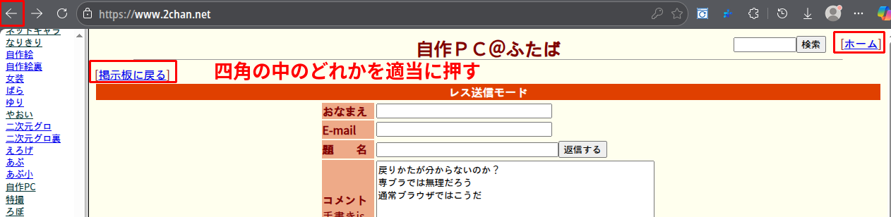 | … | 80無題Name名無し 25/11/18(火)22:15:54 IP:14.9.*(enabler.ne.jp)No.659065+左フレームの下の方に半角って板があるんだな |