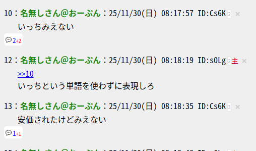 | … | 41無題Name名無し 25/11/29(土)11:13:46 IP:14.9.*(enabler.ne.jp)No.659722+>No.659704 |