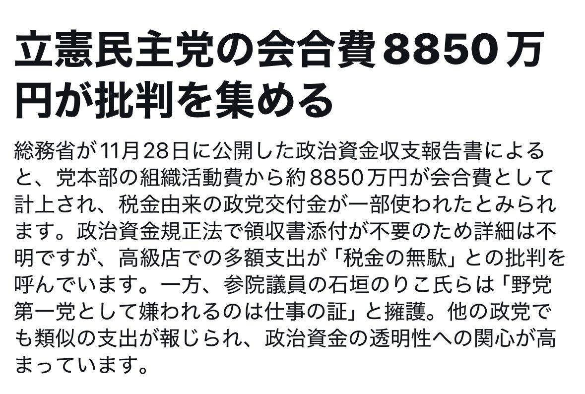 | … | 14無題Name名無し 25/12/03(水)07:11:43 IP:114.155.*(ocn.ne.jp)No.4386048そうだねx2 1764713503180.jpg-(178383 B) 自民党の無駄金を批判してるクセに随分デカい事されてますね |