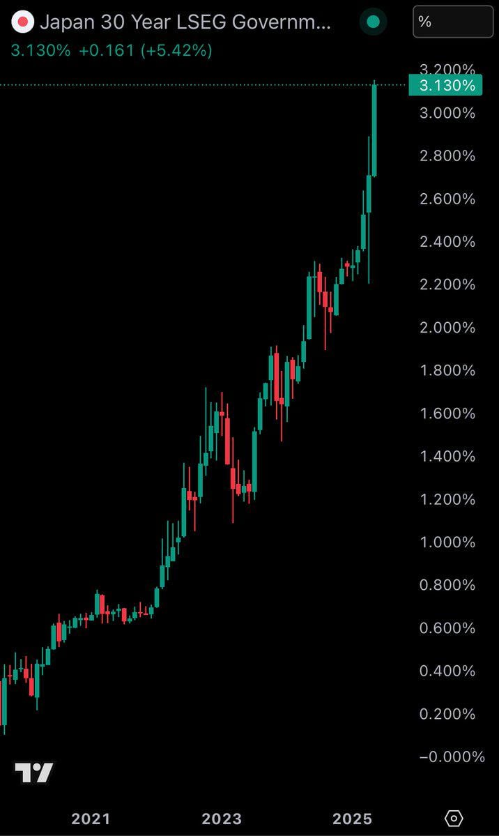 日本の債券市場は崩壊しつつある。30年国債利回りは公式に史上最高水準の3.15%に急上昇した。