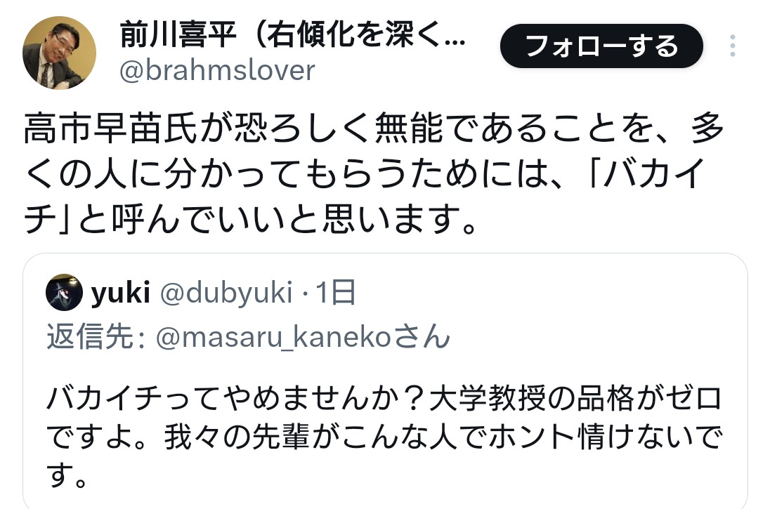 | … | 19無題Name名無し 26/01/20(火)21:59:10 IP:49.109.*(spmode.ne.jp)No.4389804+>立民公式垢の過去投稿突き付けられて |