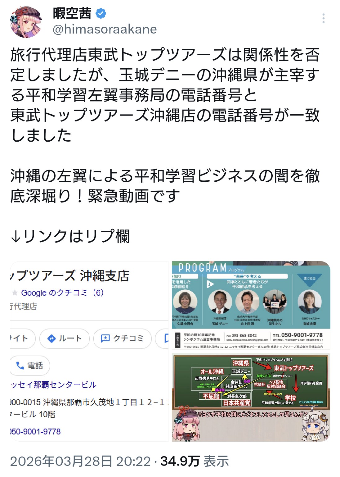 | … | 11無題Name名無し 26/03/29(日)03:51:48 IP:153.164.*(ocn.ne.jp)No.4396539そうだねx1>東武トップツアーズの沖縄支店 |