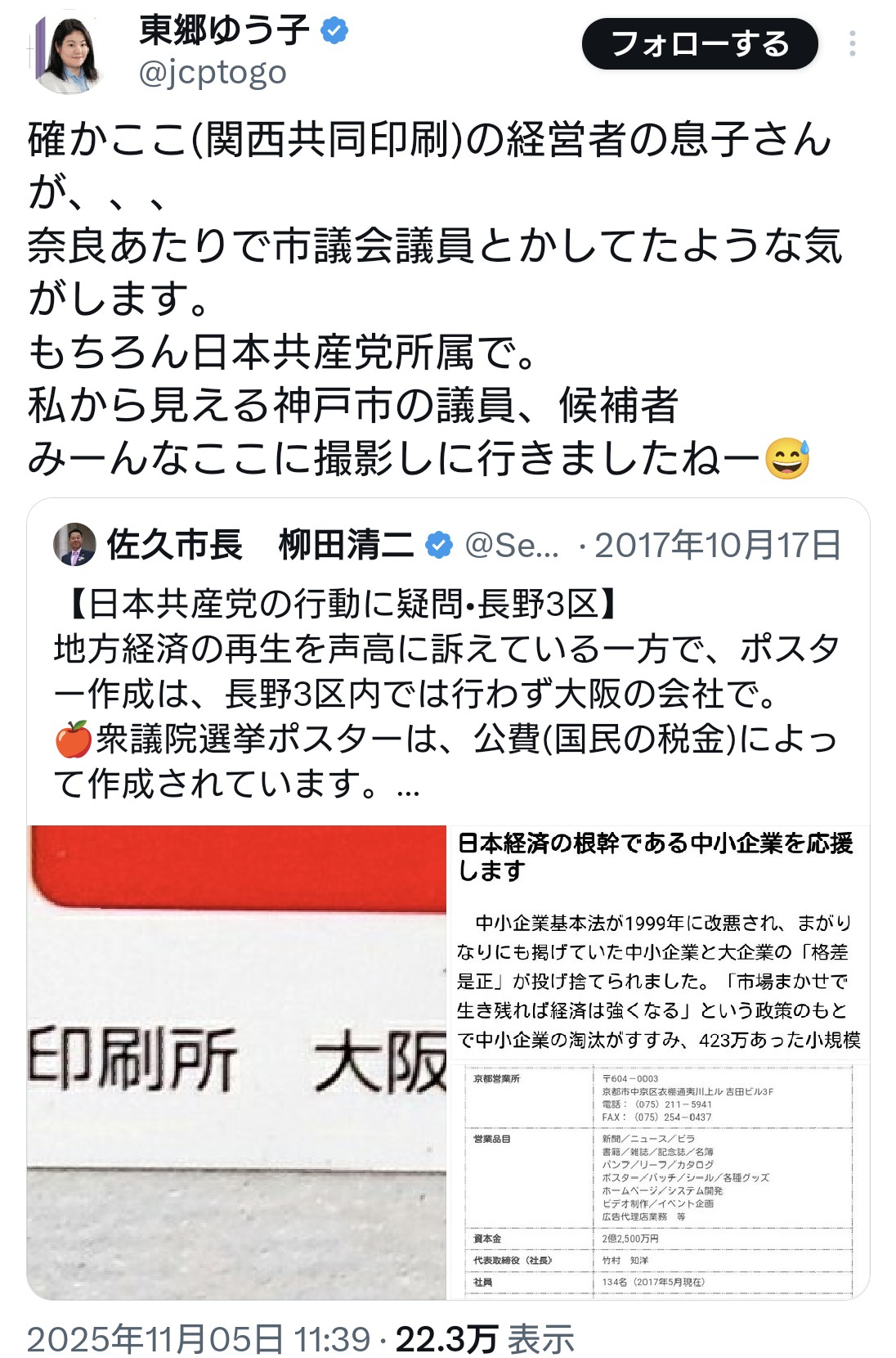 | … | 11無題Name名無し 25/11/07(金)20:22:06 IP:106.129.*(au-net.ne.jp)No.4383385そうだねx1 1762514526007.jpg-(363092 B) 逆に共産党議員が |