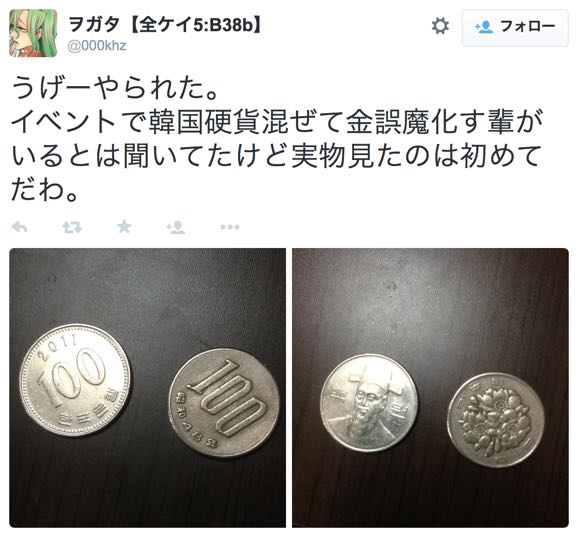 店主が困り果てていたのは、会計の際に日本の五百円玉と韓国の五百ウォン硬貨を間違えて支払われたことでした。