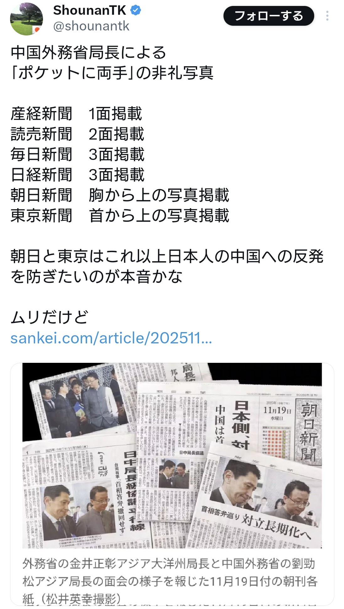 https://www.sankei.com/article/20251116-7J4G7B7LPRLJ7ABQUW6NRJUWFQ/レス7件省略。全て読むには返信ボタンを押してください。