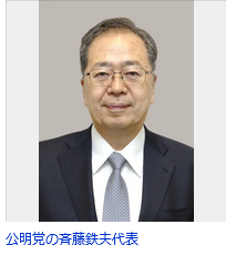 公明党の斉藤鉄夫代表は11日配信のユーチューブ番組で、自民党と再び連立を組む可能性に言及した。再連立を検討するタイミングについては、次々回の首相指名選挙になるとの考えを示した。「首相指名がある時に連立協議はあり得る」と述べた。レス24件省略。全て読むには返信ボタンを押してください。