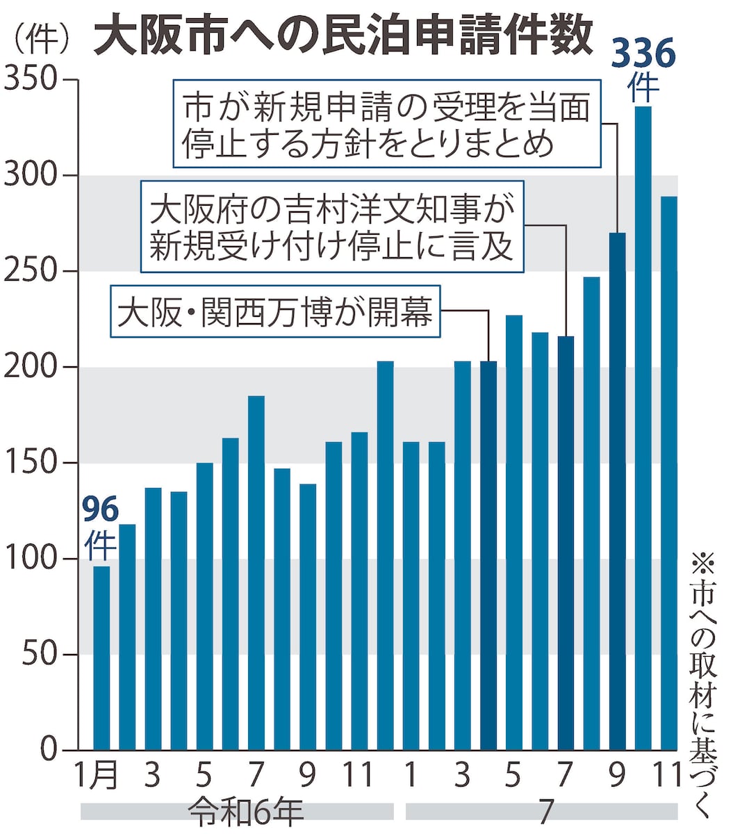 ><独自>大阪市の特区民泊申請件数、令和7年過去最多に 受理停止前に「駆け込み申請」か(産経新聞) - Yahoo!ニュース