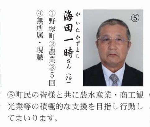 北海道積丹町議会 海田一時副議長(74)