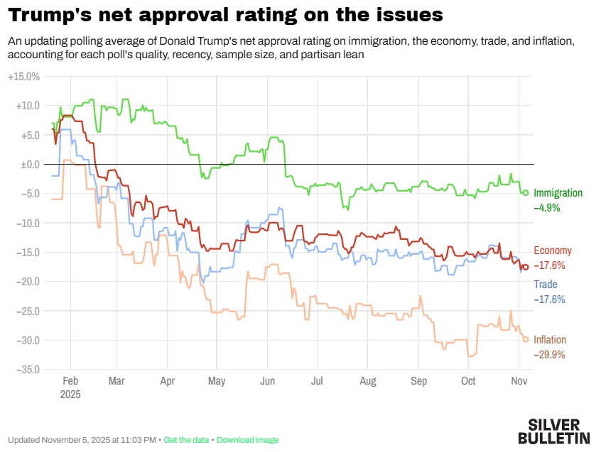 | … | 5無題Name名無し 25/11/07(金)11:48:01 IP:121.83.*(eonet.ne.jp)No.4383312+ 1762483681689.png-(114291 B) トランプ支持率の低下は経済争点によるもので、 |