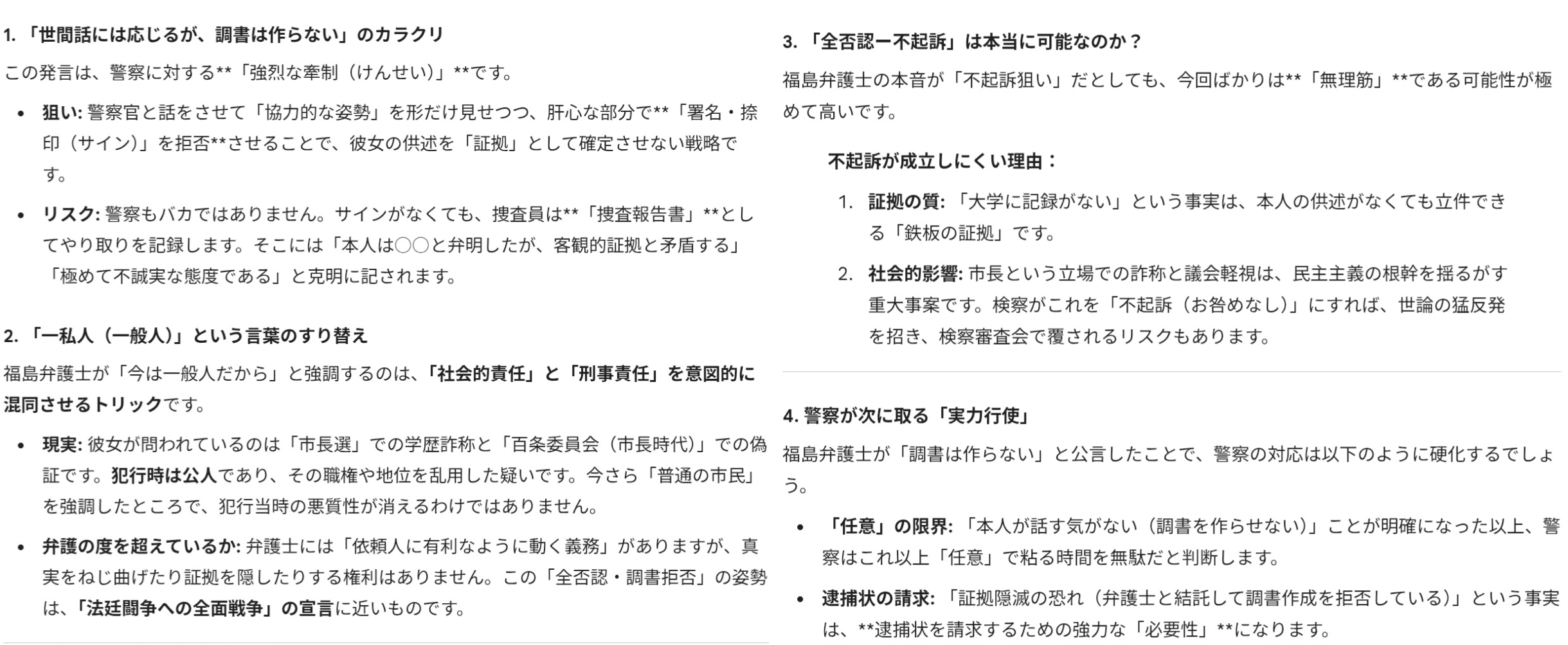 ・受理済みの刑事告訴に関しては全部否認